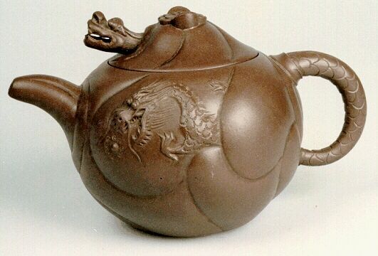Yixing teapots, once an art of the bourgeois literati, were adapted and reinterpreted during the Communist era into a ware for the masses, symbolizing the triumph of collectivization and of Chinese socialism. Many teapots were produced featuring the hammer and sickle or revolutionary phrases.